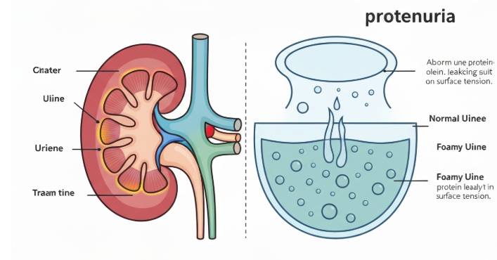 단백뇨는 신장에 문제가 생겨 소변으로 단백질이 빠져나오는 현상으로, 거품뇨의 주요 원인 중 하나입니다.