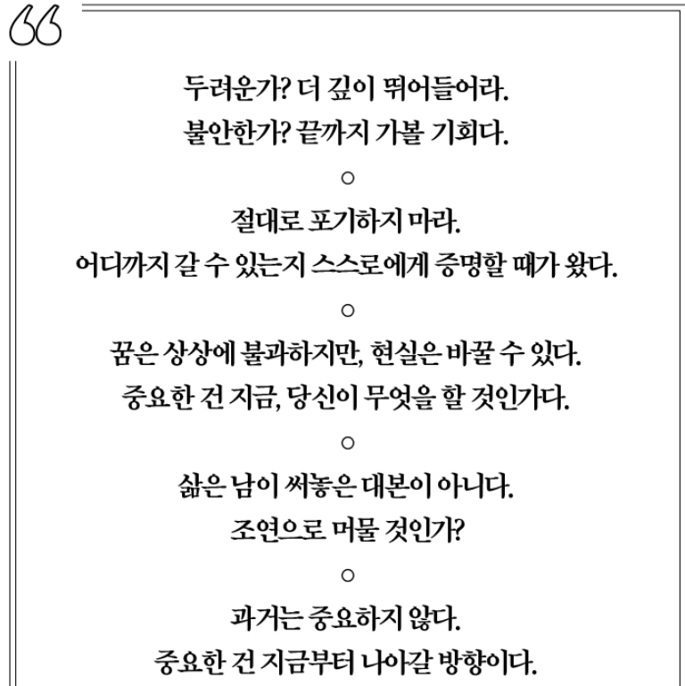 "고통을 피하지 않고, 오히려 그것을 자신을 단련하는 도구로 삼는 자."