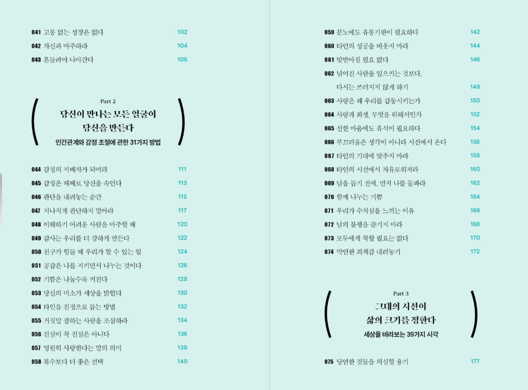 - 세상을 바라보는 39가지 시각 (삶의 의미를 재정의하는 관점, 불확실성 속에서 평온을 찾는 법 등)
