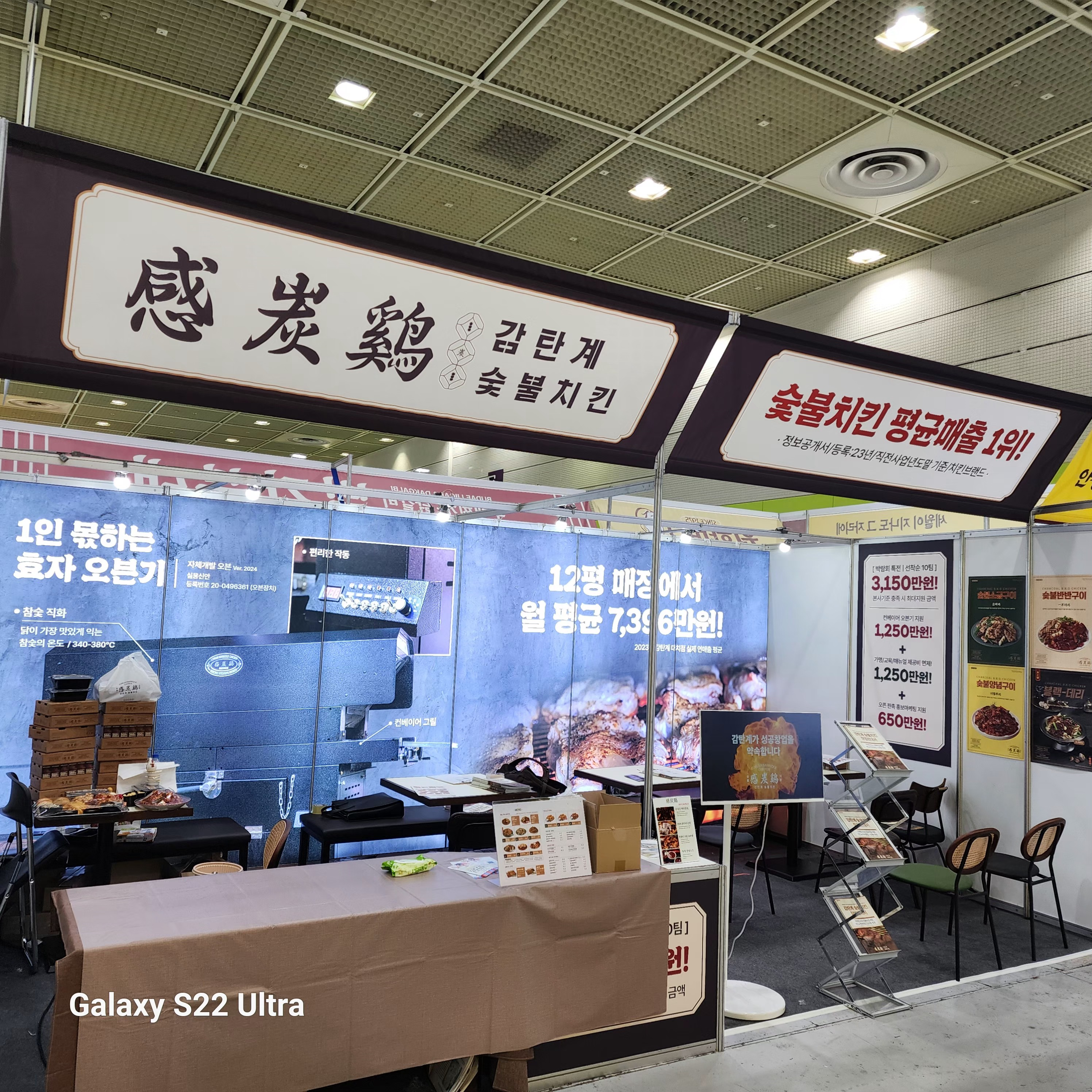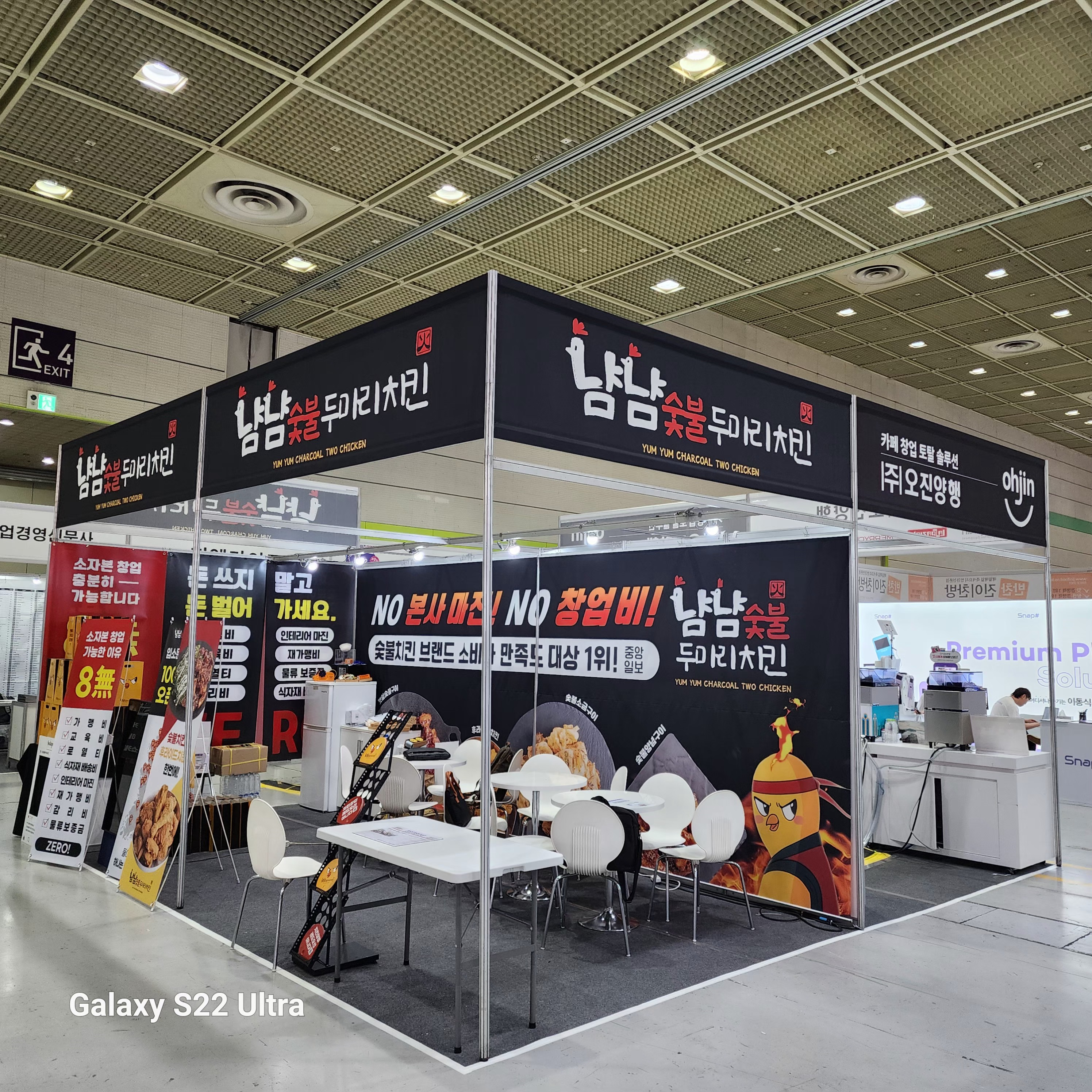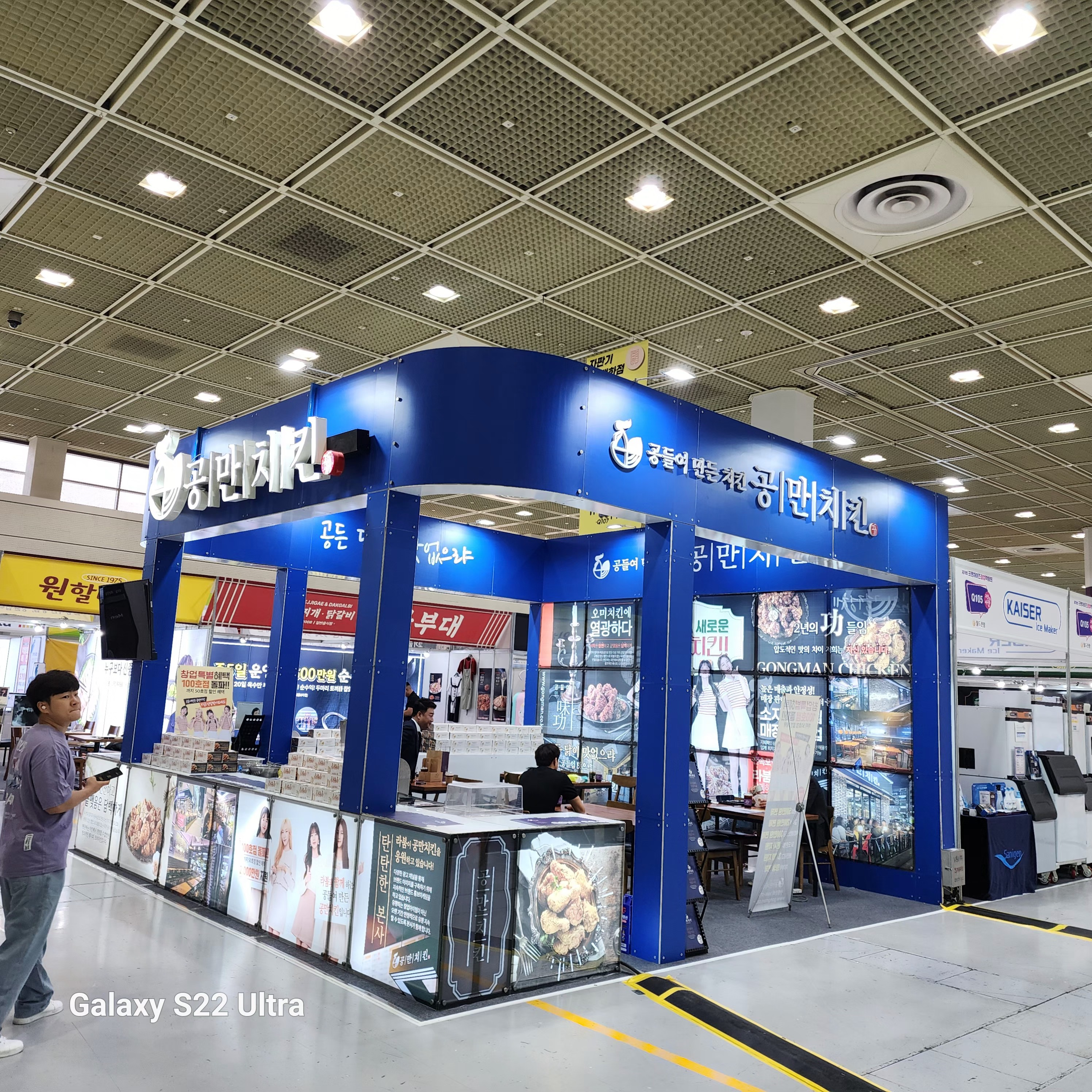 이번에 치킨피자는 총 9개 업체가 참석하였으며 누가 봐도 상당히 빈약한 업체들이 참석하여 치킨/피자를 한번 창업해 보고자 하는 예비창업자에게는 상당히 실망감을 주었던 업체참석이라고 할수 있다. 아래 사진은 공만치킨으로 공만치킨은 명함도 못 내미는 치킨브랜드이다. 부스는 상당히 고급스럽게 만들어 놓았으나 월드전람이 외식업계를 제대로 알고 잇나 싶다. 메이저브랜드가 입점하기 싫다고 하면 돈을 받는 것이 아니라 주고서라도 참석을 시켜야 되는 게 아닌가? 이렇게 매번 한다면 박람회 참석자들에게 외면받는 창업박람회가 되지 않을까 생각한다. 공만치킨은 2022년 정보공개서상 매장수 28개 가맹점 연평균매출 147백만 원(월 단위로 환산하면 월매출 1200만 원 정도) 주관업체인 월드전람은 제정신인가 물어보고 싶다.