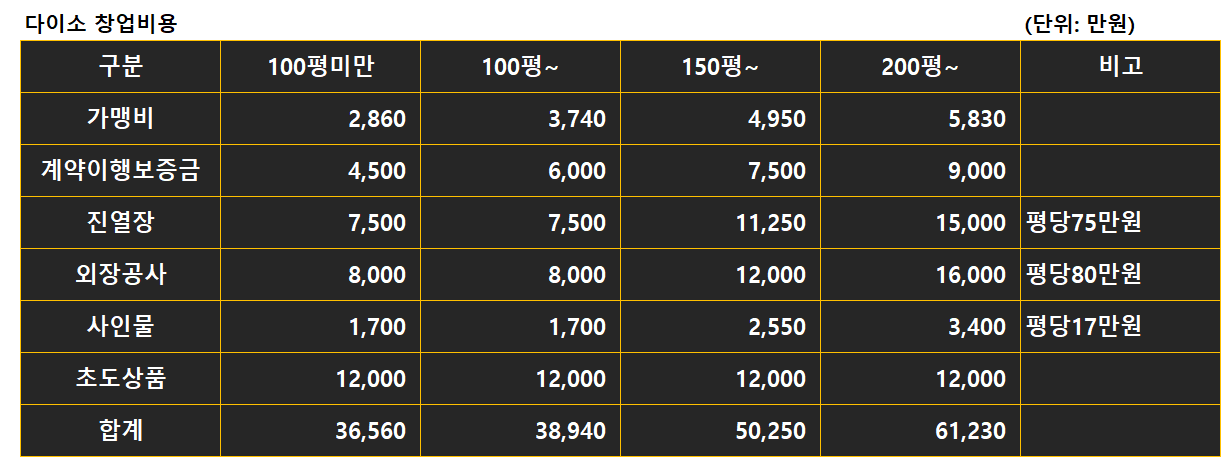 1. 다이소창업비용은 얼마나 들까?